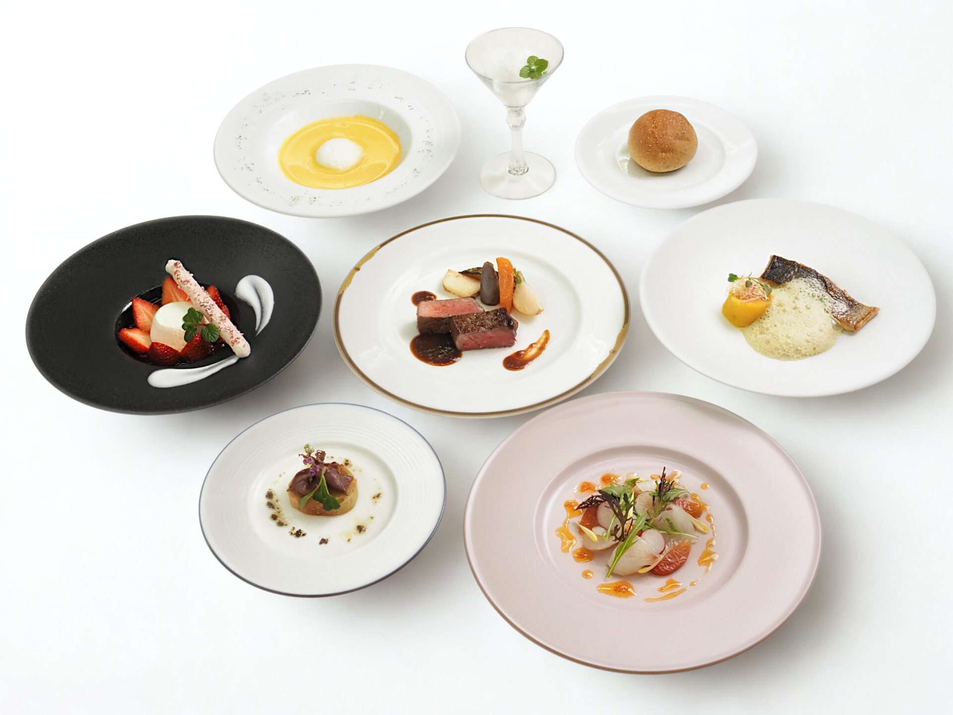 プロローグは東北牧場の野草で作ったバケットの上に蛍烏賊のコンフィをのせたアミューズ。東北牧場の厳しい冬の寒さを耐え甘みを蓄えた雪下人参のスープなど、ひと皿ごとに春の訪れを感じていただけます。続いて、魚料理、グラニテ、メインディッシュには牛ロースを使ったポワレを。そしてお楽しみのデザートは東北牧場の柿ジュレを忍ばせたクレームダンジュ。どの料理にも直営農場「東北牧場」の素材を織り込み様々な食材と見事に融合した、ここでしか味わえない洋食料理人が自信をもってお届けする春らしいコース料理です。自然の息吹を感じる、季節限定の春のコースをご堪能ください。
