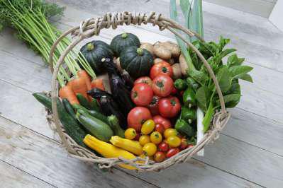 野菜、小麦、ハーブ、果実、米、山菜など、およそ100種類を収穫。週2回当ホテルに直送しています。